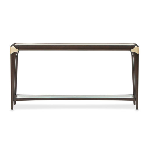 Bring an open, inviting ambiance to your entryway or a floating sofa with this modern console table. It boasts a warm brown finish over beautiful m...