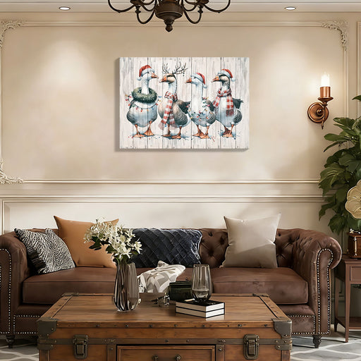 Framed Vintage Duck Wall Art Print, Christmas With Ornaments Watercolor Canvas Poster Wall Decor - Red Buffalo Check