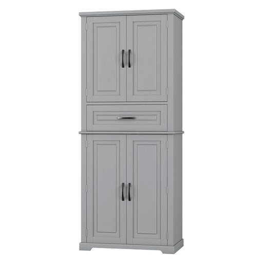 Farmhouse Style Pantry Cabinet With Drawer 2 Cabinets & 6 Door Shelves Adjustable Shelves Freestanding Cupboard - White