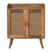 Larissa T-Bar Raised Cabinet - This beautiful T-bar Cabinet has been constructed from 100% solid mango wood and has a lovely natural oak-ish finish. It features a clean rattan design on the doors, t-bar handles, as well as 4 Nordic style legs for stability and a modern touch. Make full use of this piece in your living room or hallway and let it take care of storing all your belongings.