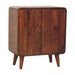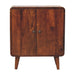 Mini Classic Chestnut Cabinet - This mini classic cabinet has been constructed from 100% solid mango wood in a chestnut finish and features 2 shelves inside for storage space, as well as shiny knobs on the doors, and nordic style legs. Make full use of this cute cabinet in the living room or bedroom. This product is part of the Recession Collection.