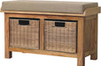 Artisan Furniture Solid Wood Rattan Basket Linen Bench - This beauty has been constructed from 100% solid mango wood in an oak-ish finish, it has a soft and comfy linen seat pad and 2 rattan baskets that are removable, perfect for storing any bits and pieces you want to be kept out of sight. A lovely neat addition to your hallway.