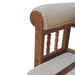 Strapped Hallway Bench - Add some luxury style to your home living area with this fabulous carved hallway bench. It is constructed from 100% solid mango wood in an oak-ish finish and upholstered in 100% cream boucle which is presented on the seat and backrest. Other features include buffalo leather buckle straps which can be secured or undone and hand turned front legs.