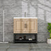 Modern Freestanding 32" Bathroom Vanity With Ceramic Sink, Hot And Cold Faucet, 2 Door Cabinet & Open Iron Shelf, Magnesium Oxide Frame - Natural