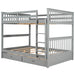 Full Over Full Bunk Bed With Ladders And 2 Storage Drawers - Gray 80.0"W x 58.7"D x 64.61"H - 175.4 lb