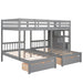 Full Over Twin & Twin Classic Triple Bunk Bed With Drawers And Guardrails - Gray