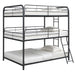 Triple Bunk Bed, Full Size With Sturdy Metal Frame And Safe Stairs - Black