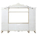 Exclusively designed and filled with romantic spirit, the beautiful Gorsedd entertainment center features Queen Anne legs and carved apron and trim, decorated with raised and oversized scrolled moldings in a golden ivory finish. This sophisticated living room unit has matching case pieces including a center TV stand and large left and right facing piers with mirrored backs, ensuring plenty of unique storage and display space. The collection boasts of multiple glass doors and glass display shelves and an elegantly arched and lighted center bridge. This stylish and detailed piece is ideal for entertaining guests and will add elegance to any living room Decor.