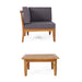 Dimensions: The corner chair measures 29.25” W x 29.25” D x 26.50” H, while the coffee table measures 27.50” W x 27.50” D x 14.00” H, offering a compact yet comfortable setup for your patio.