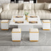 - High-Gloss Surface and Elegant Design: Adding a luxurious touch to any space.The elegant collision of white and gold edges creates a visually appealing contrast, giving the table an elevated, high-end feel.