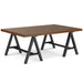 Features a simple and extra thick table top surface and sturdy charcoal powder coated metal sawhorse supports
