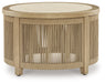 Kick back and relax with the contemporary vibe of this outdoor coffee table. Rope detailing brings artistic flair, while naturally beautiful eucalyptus wood provides must-have durability. And for added style and function, a cleanable stone-look table top completes the piece.