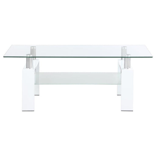Rectangle Coffee Table With Tempered Glass Top And White Legs, Modern Table For Living Room
