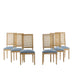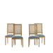 French Country Dining Chairs (Set of 4) Elegant Cane Backrest & Upholstered Seats Rustic Weathered Solid Rubberwood Frame - Slate Blue