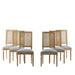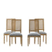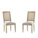 French Country Dining Chair Set With Rectangular Cane Backrest And Smooth Upholstered Seating - Beige