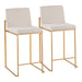 Fuji - Contemporary High Back Counter Stool (Set of 2) - Gold / White 19.49"W x 16.5"D x 35.51"H - 11.99 lb