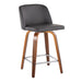 Toriano - Mid-Century Modern Fixed Height Counter Stool With Swivel And Square Footrest (Set of 2) - Walnut / Gray