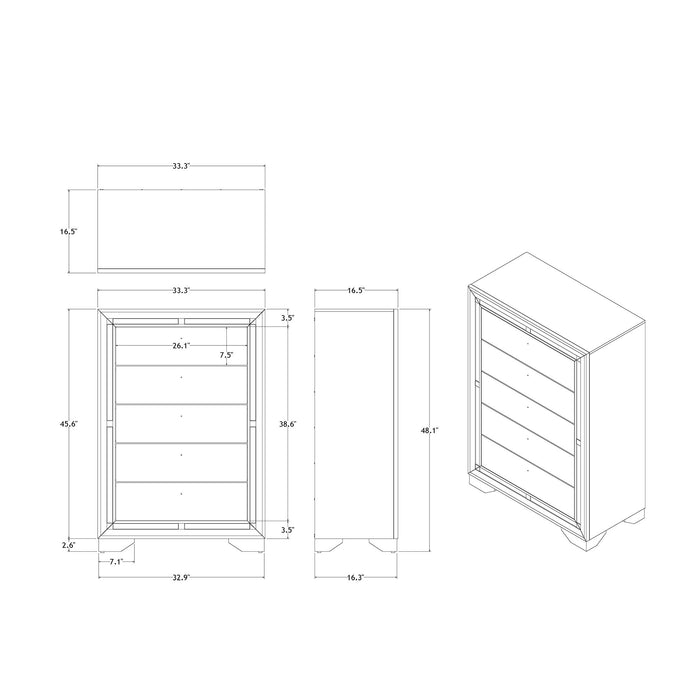 33.27"W x 16.5"D x 49.13"H - 99.87 lb