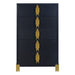 introducing the Empire 5 Drawer Chest in sleek black, a chic storage solution for your bedroom. Crafted with durable eco-friendly materials and a sophisticated finish, this chest exudes contemporary elegance. Its gleaming gold tiered drawer pulls and feet evoke the enchanting allure of a city skyline at night, adding a touch of glamour to your space. Inside, the drawers are meticulously crafted with English dovetail joinery and ball bearing glides, ensuring smooth and reliable operation. Enhance your bedroom with the Empire 5 Drawer Chest, where beauty meets quality for a truly captivating ambiance.