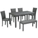 - 6-Piece Dining Set: Includes a dining table, four chairs, and a bench; comfortably seats six for family meals or casual gatherings.
