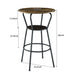 Rustic Brown Round Bar Table And Stool Set With Shelf, Upholstered Stool With Backrest - Antique Brown