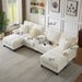 U Shaped Sectional Sofa Bed With Storage, 4 Seater, Features Cup Holders And Soft Foam Cushions - Beige