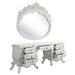 Luxurious style, sophisticated charm, and lustrous finishes are all included in the Vanaheim Bedroom Collection. Extravagant scroll floral design with gold trim accent creates classic appeal and timeless silhouettes. Button tufted headboard and footboard add texture and dimension to the panel bed. The matching casegoods in an antique white finish echo the overall design of the collection.'With so many irreplaceable characters, the Vanaheim Bedroom Collection will work beautifully in a variety of other spaces.