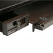 Features two side drawers with metal drawer glides and flip down pull-out keyboard tray