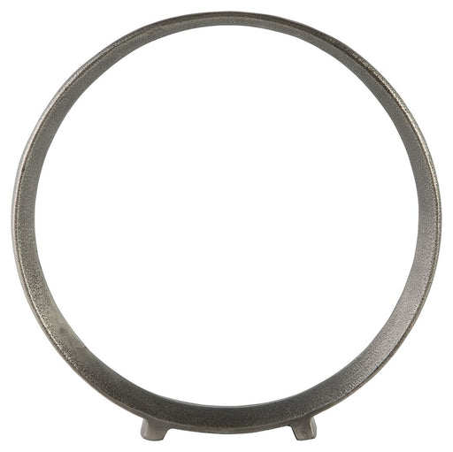 This sculpture brings contemporary art full circle. Interlocking metal rings in a black finish add an art gallery touch for a console table, booksh...