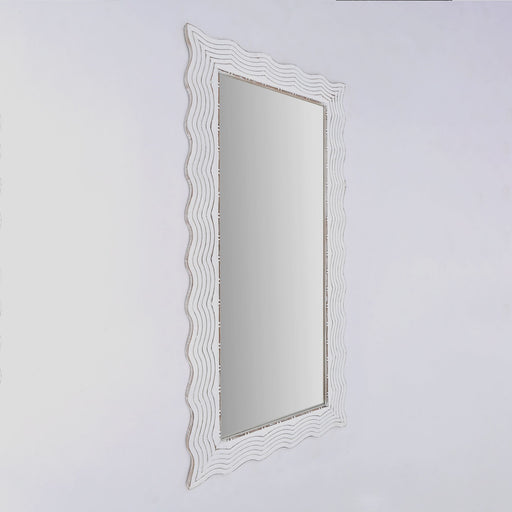 Handcarved Wave Design Rectangle Mirror Accent Enhancing Space - Antique White