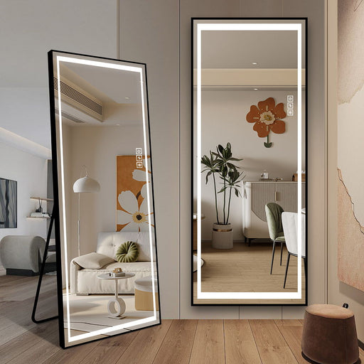 Led Mirror Full Length Mirror With Lights Wide Standing Tall Full Size Mirror For Bedroom Giant Full Body Mirror Large Floor Mirror With Lights Stand Up Dressing Big Lighted Mirror - Black