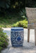 Ceramic Garden Stool, Small Side Tabel - White / Blue11.18"W x 11.18"D x 15.91"H - 16.49 lb