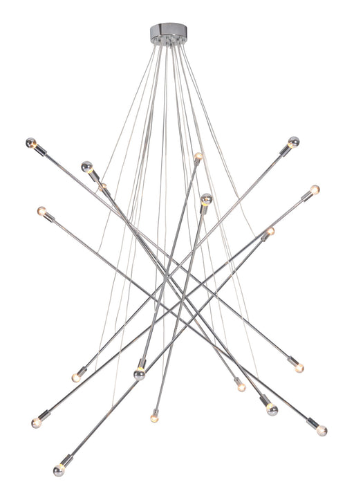Belief ceiling lamp gives a eye caching statement to any room, with long chrome arms suspended is a elegant criss cross pattern and finished at eit...