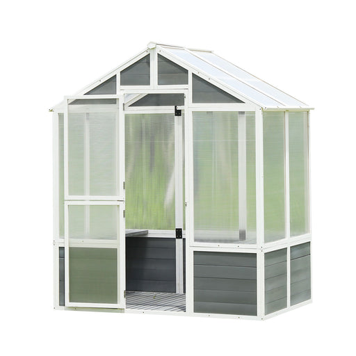 Greenhouse, Wooden Greenhouse Polycarbonate Garden Shed For Plants, Walk-In Outdoor Plant Gardening Greenhouse For Patio Backyard Lawn, Grow House With Front Entry Door - White / Gray