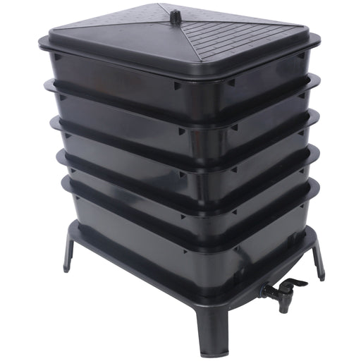 Eco Friendly 5 Layer Worm Compost Bin With 50L Capacity, Easy Setup Plastic Worm Farm Kit - Black