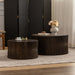 Cylindrical Nesting Coffee Table Set & Textured Embossed Design (Set of 2) - Dark Brown