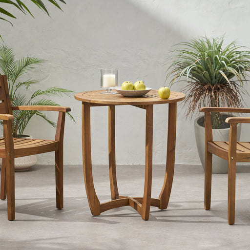 Outdoor Circular Wood Bistro Table With Curved Legs And Slat Panel Table Top - Teak