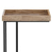 - Industrial style includes tray top design with black metal frame and legs
