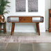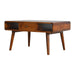 Artisan Furniture Solid Wood Curved Coffee Table - This Coffee Table offers clean, curved edges and has been constructed from 100% Solid Mango Wood in a rich, finish. Some features include 2 drawers that have a shiny knob, 2 open slots to place any books, photo frames or ornaments and stands on 4 Nordic style legs.