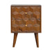 Chestnut Cube Carved Nightstand - The main feature of this nightstand is the hand carved cube drawer fronts which make the pieces from this collection stand out. It has been constructed from 100% solid mango wood in a chestnut finish and stands on 4 Nordic style legs. It can be partnered with the other pieces from the range or stand individually as its style is versatile and can fit into different types of interiors.