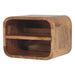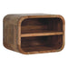 Oak-ish Floating Open Curve Nightstand - Inspired by our curved range, this minimalistic wall-mounted unit has been constructed from 100% solid mango wood in an oak-ish finish and features 2 open sheves for storing any bits and pieces you wish to keep close by before bedtime. It's neat and clean design can easily be mounted on the wall without the fuss of any legs. Caution! Do not sit on the unit.
