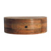 Large Wall Mounted Rounded Bedside - The bigger brother to IN1296. This wall-mounted bedside has been constructed from 100% solid mango wood in an oak-ish finish and offers a unique shaped design with rounded edges. It can be easily mounted on the wall without the fuss of legs. It also features 1 drawer perfect for storing any bits and pieces and keeping them close before bedtime.