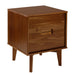 Mid-Century Modern 2 Drawer Solid Wood Nighstand With Cutout Handles - Caramel 20.0"W x 15.98"D x 24.02"H - 22.99 lb