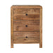 Oak-ish Naya Nightstand - Featuring rounded corner edges, this naya nightstand is a staple in the bedroom with 3 large spacious drawers perfect for keeping things close before bedtime, it is constructed from 100% solid mango wood in a oak-ish finish and has shiny brass knobs for easy access into and from the drawers.