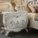 Luxurious style, sophisticated charm, and lustrous finishes are all included in the Vanaheim Bedroom Collection. Extravagant scroll floral design with gold trim accent creates classic appeal and timeless silhouettes. Button tufted headboard and footboard add texture and dimension to the panel bed. The matching casegoods in an antique white finish echo the overall design of the collection.'With so many irreplaceable characters, the Vanaheim Bedroom Collection will work beautifully in a variety of other spaces.