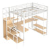 Full Size Metal Loft Bed With Storage Staircase And Small Wardrobe, Built - In Desk And Storage Shelves - White94.29"W x 56.5"D x 70.0"H - 220.0 lb