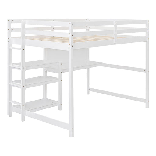 Full Size Loft Bed With Shelves, Desk And Writing Board - White