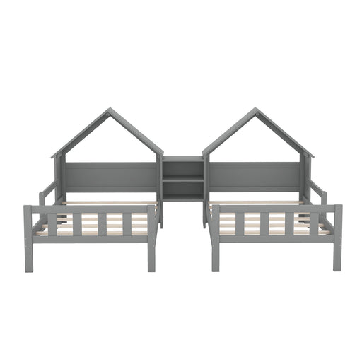 Corner Bed Frame Twin Size With Bookcase And 2 Underbed Storage Drawers, Modern Twin Bed With LED Light And Charging Station, Modern Daybed Reversible Left Or Right - Gray
