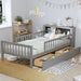Twin Size Bed With Headboard Storage Rack, 2 Under Bed Drawers, 3 - Side Guardrails For Safety And Security - Gray