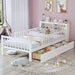 Twin Size Bed With Headboard Storage Rack, 2 Under Bed Drawers, 3 - Side Guardrails For Safety And Security - White